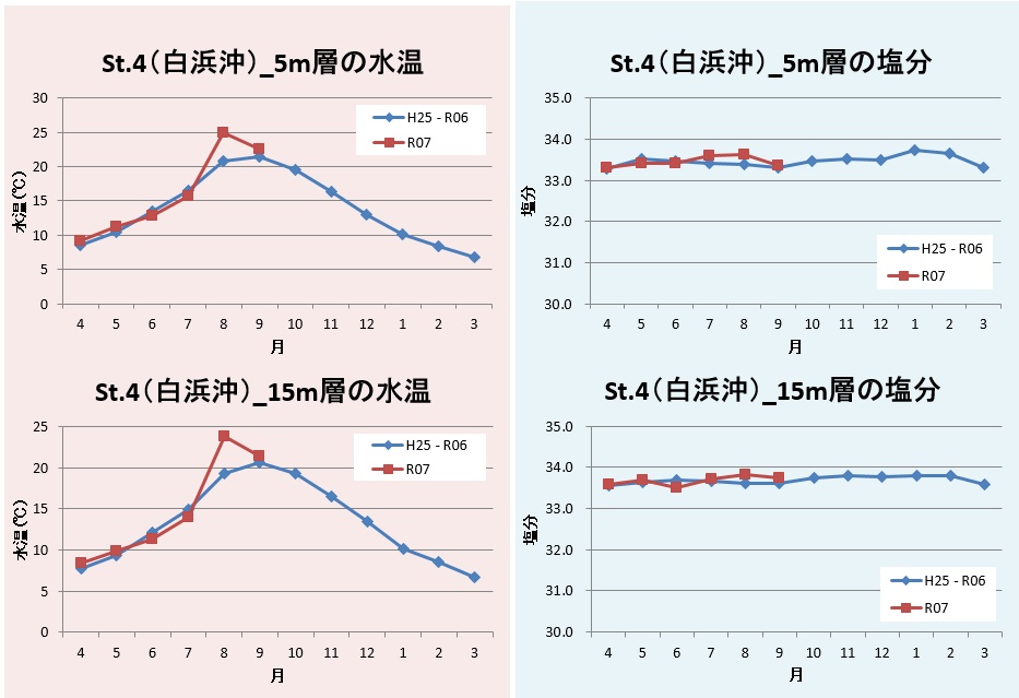 図5 St.4(白浜沖)の水温及び塩分の推移