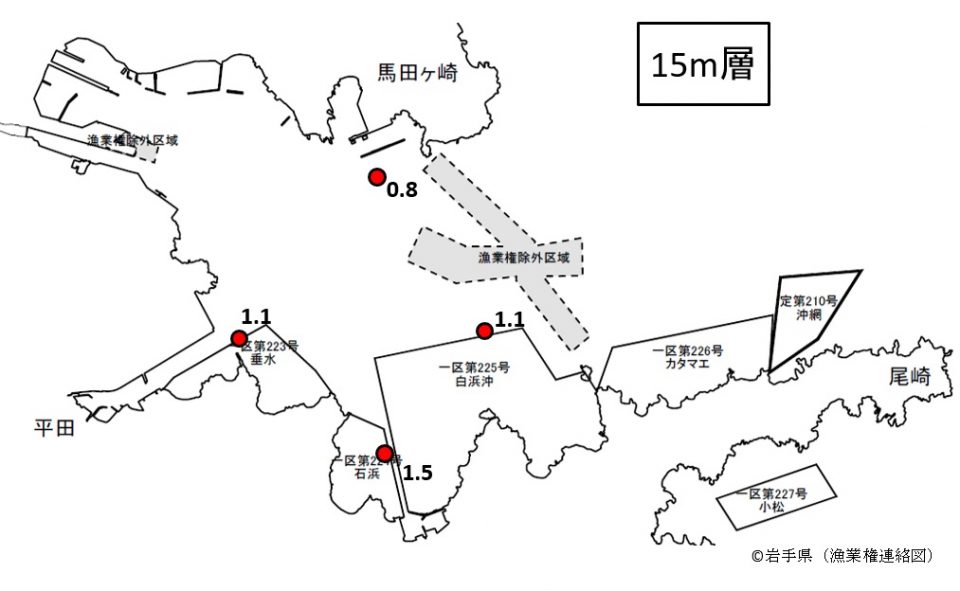 20251003conserve_km008 ← 前へ 次へ → 図8 15m層のクロロフィル蛍光値 ※水質計で測定した値であり、正確な濃度ではありません。湾内の相対的な比較としてご利用ください(月をまたいでの比較はできません) 。 Tweet Pocket