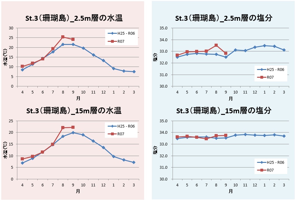 図4 St.3(珊瑚島)の水温及び塩分の推移