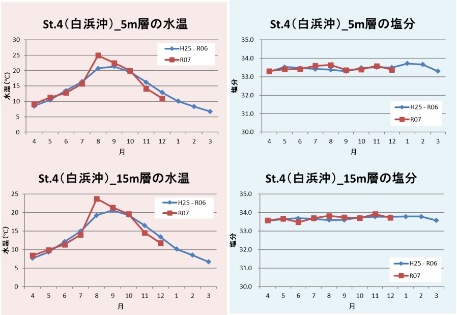 図5 St.4(白浜沖)の水温及び塩分の推移