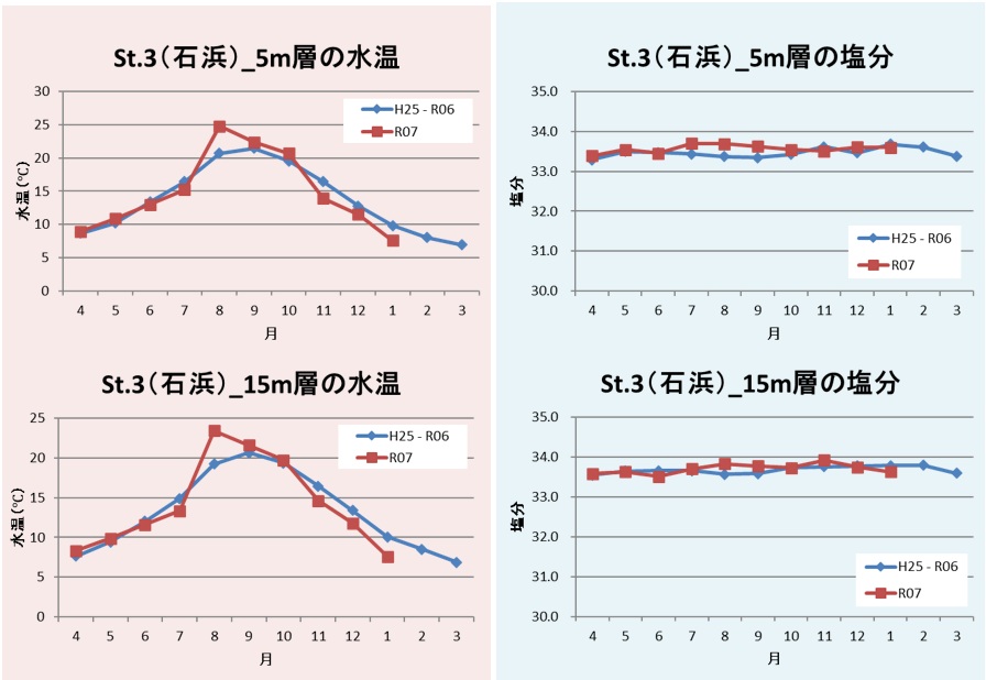 図4 St.3(石浜)の水温及び塩分の推移