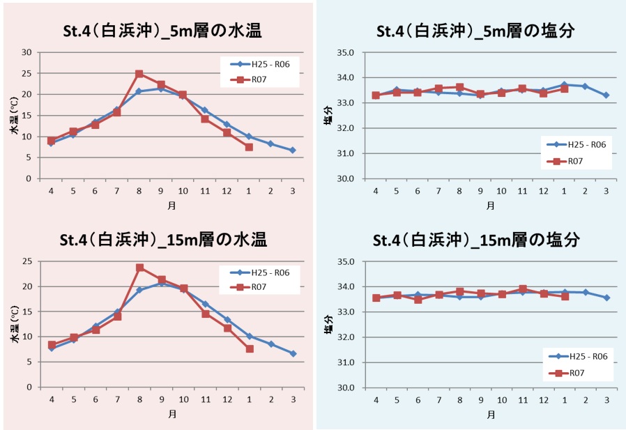 図5 St.4(白浜沖)の水温及び塩分の推移