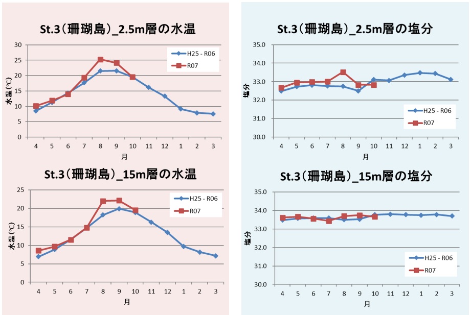 図4 St.3(珊瑚島)の水温及び塩分の推移