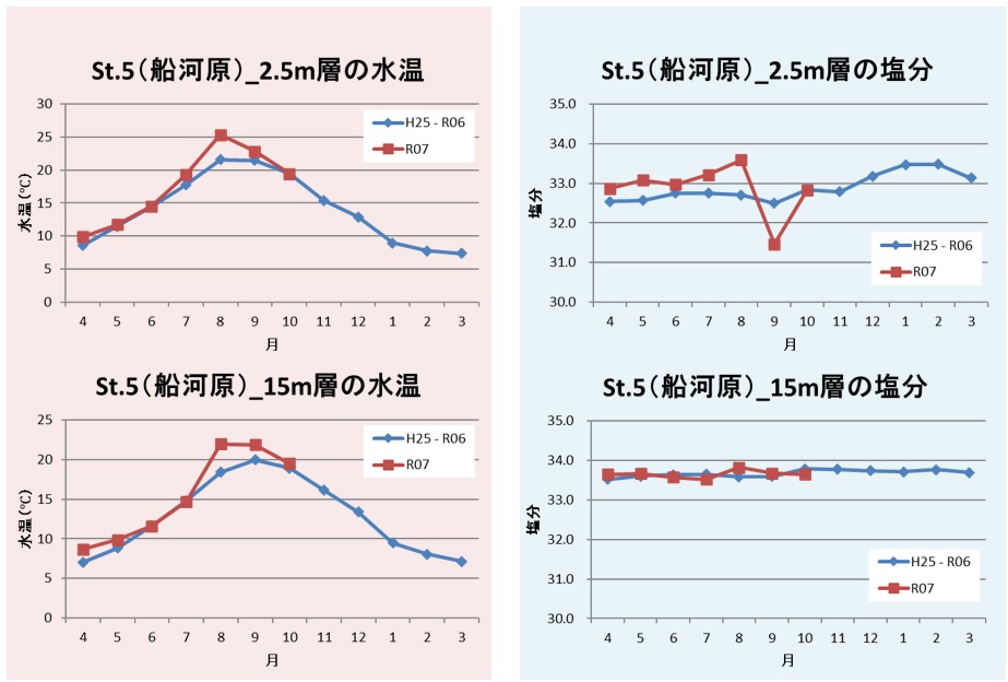 図5 St.4(蛸の浦)の水温及び塩分の推移