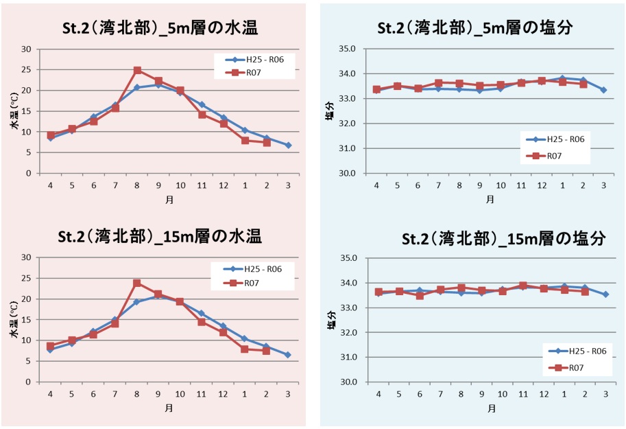 図3 St.2(湾北部)の水温及び塩分の推移