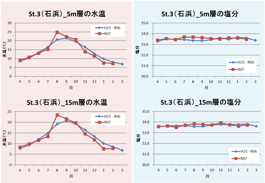 図4 St.3(石浜)の水温及び塩分の推移