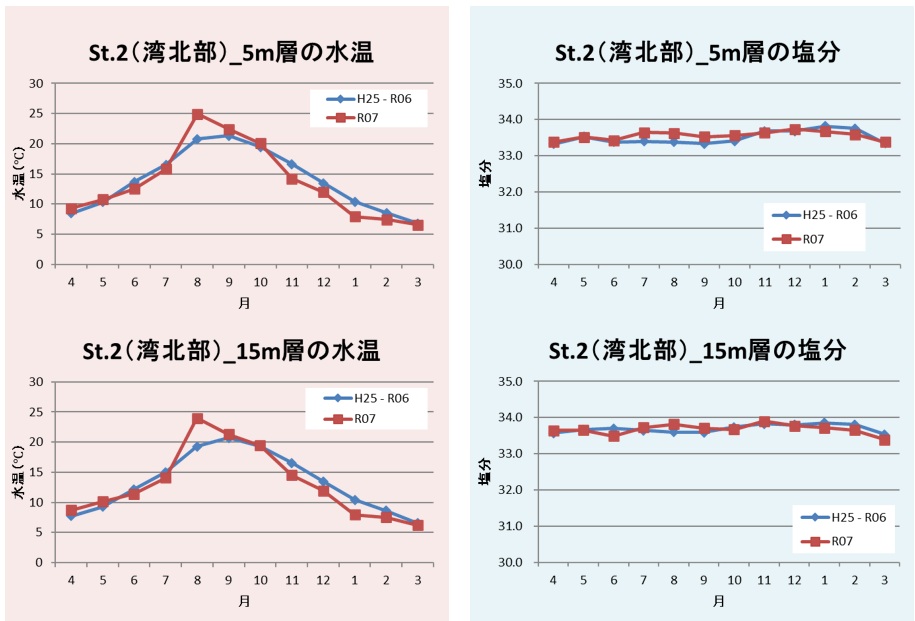 図3 St.2(湾北部)の水温及び塩分の推移