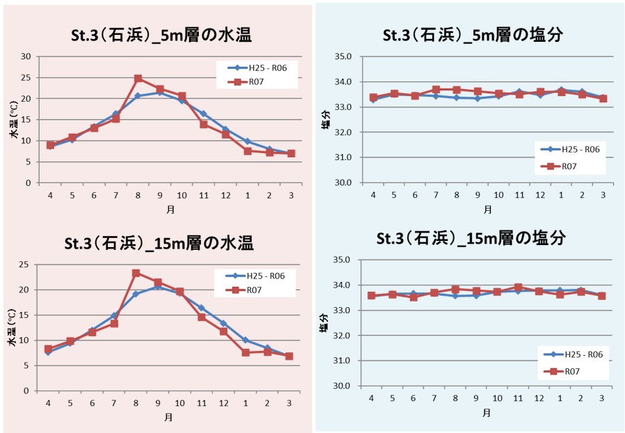 図4 St.3(石浜)の水温及び塩分の推移