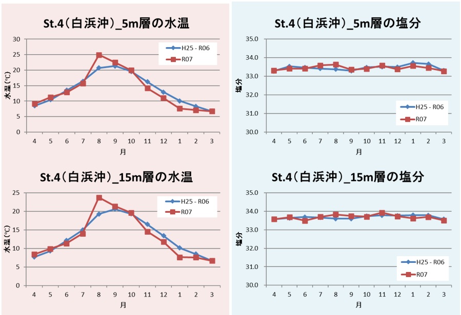 図5 St.4(白浜沖)の水温及び塩分の推移